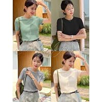 Round Neck T Shirt High Quality Tee Short Sleeves Semi Croptop for Women