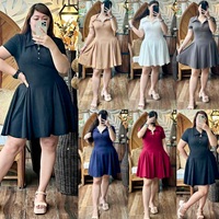 Plus Size Polo Crop Button Down Korean Plain Loose Tops